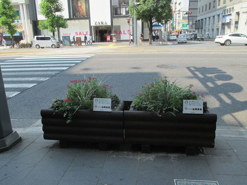 広島市が推進する緑化施策「四季の花プランター設置事業」に協賛しています。(クリックで拡大します) |