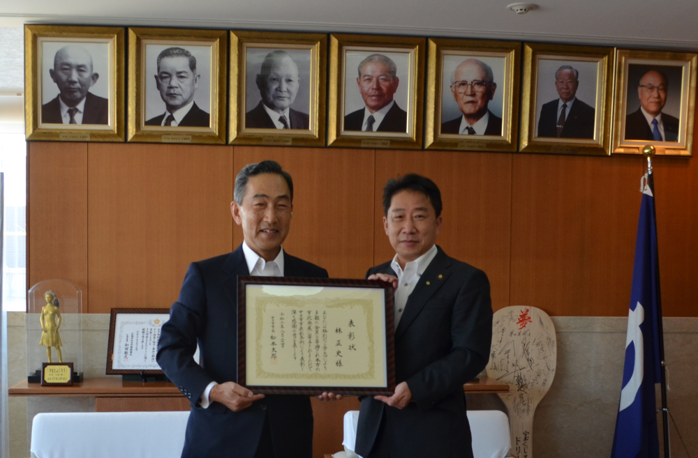 廿日市市の市政発展に貢献したとして、廿日市市長から表彰状が贈呈されました。 |
