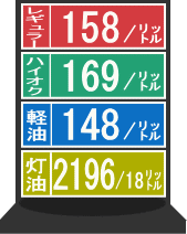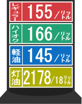 | ※2025年11月13日7:00 より、レギュラー、ハイオク、軽油の価格を変更させて頂きます。 何卒諸事情ご賢察の上、ご了承くださいますようよろしくお願い致します。 ※ 税込価格(消費税等10%) ※各カードは、特典がそれぞれ異なります。詳細については、当店STAFFにお気軽に 声をおかけください。お客様に最適なカードをご提案させていただきます。 |